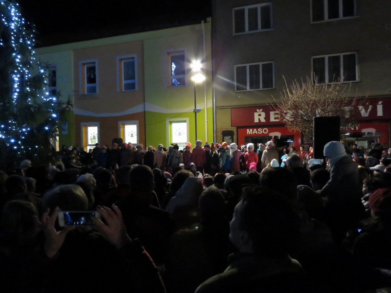 Slavnostní rozsvícení vánočního stromu v Koryčanech na náměstí.