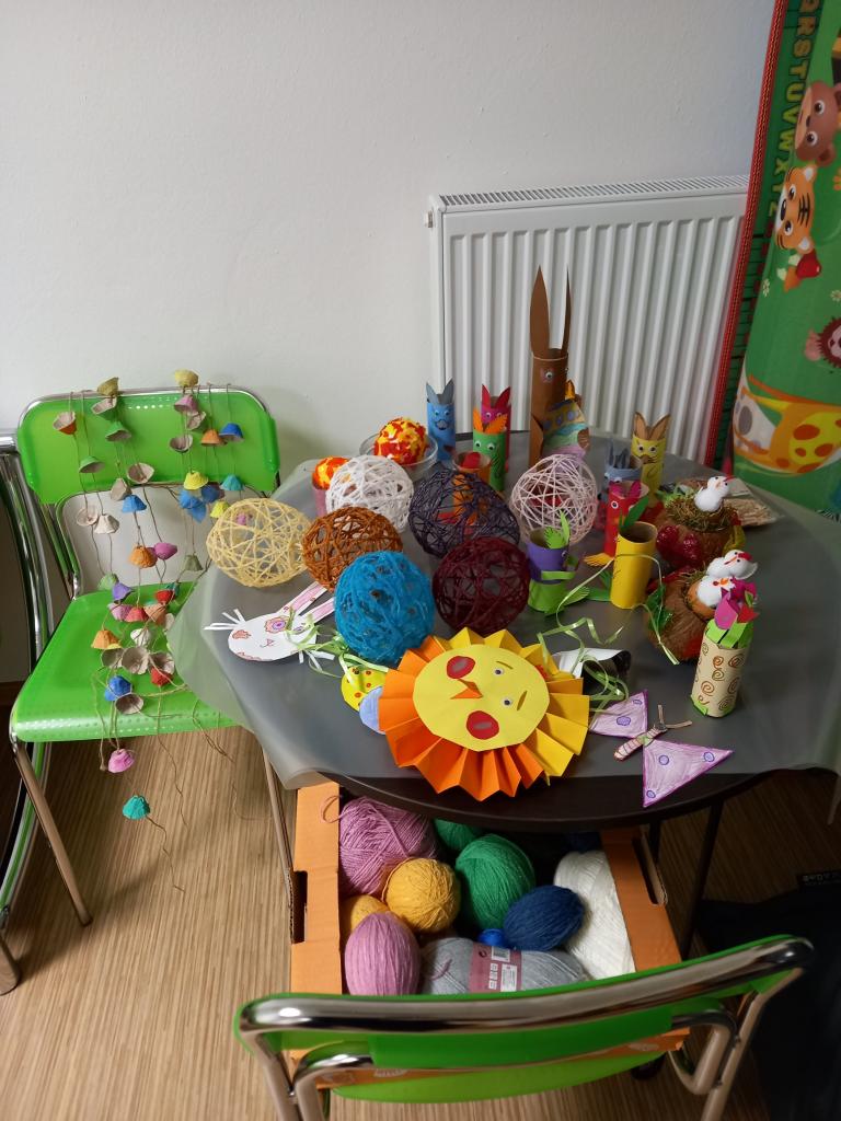 Příprava výzdoby na Jarní jarmark, který proběhne v kulturním domě 1. dubna 2023.