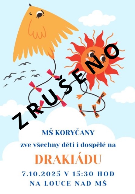 Mateřská škola Koryčany srdečně zve všechny zájemce na tradiční Drakiádu. Tato akce se uskuteční na louce nad mateřskou školou, kde si můžete užít krásné odpoledne plné zábavy a soutěží s draky. Přijďte si užít společné chvíle a podpořit přátelskou atmosféru. Těšíme se na vaši účast.